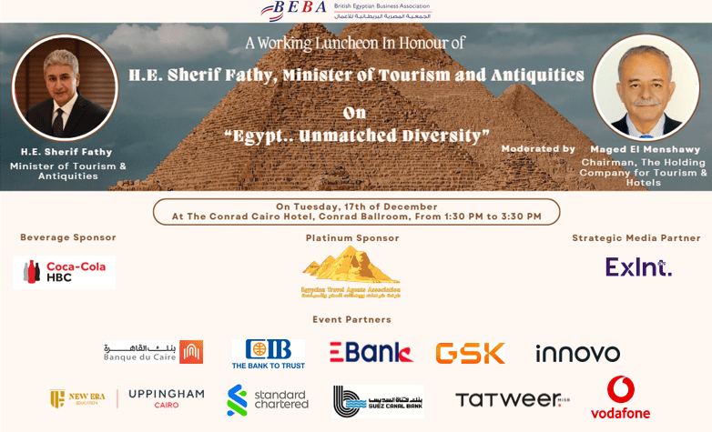 Cairo, December 17, 2024: The British Egyptian Business Association (BEBA) has organised a working luncheon in honour of H.E. Sherif Fathy, Egyptian Minister of Tourism and Antiquities, at Conrad Cairo Hotel.